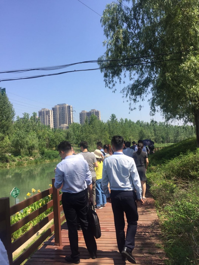 上午9点半,考察团一行首先抵达“合肥滨湖新区塘西河水质治理工程”现场,塘西河目前感官已得到明显改善,鸟鸣花香,野鸭成对,成为滨湖新区重要的滨水开放空间和景观廊道,给参观者留下了深刻的印象。