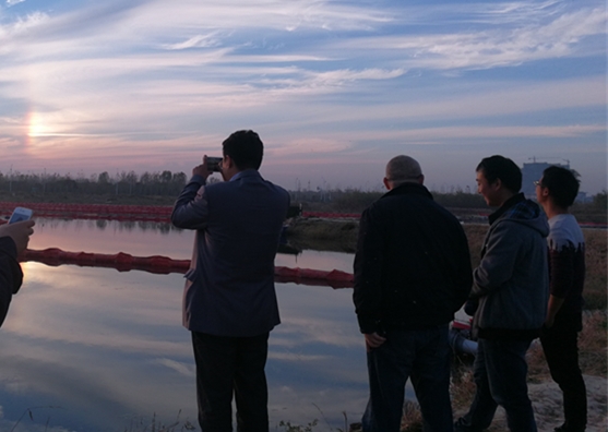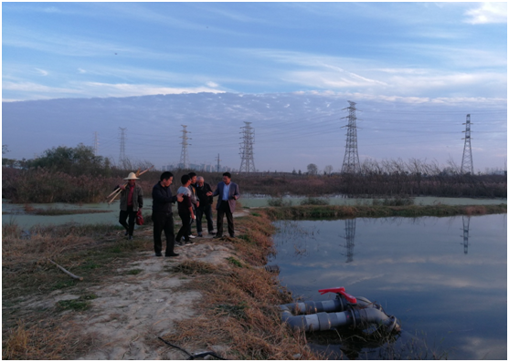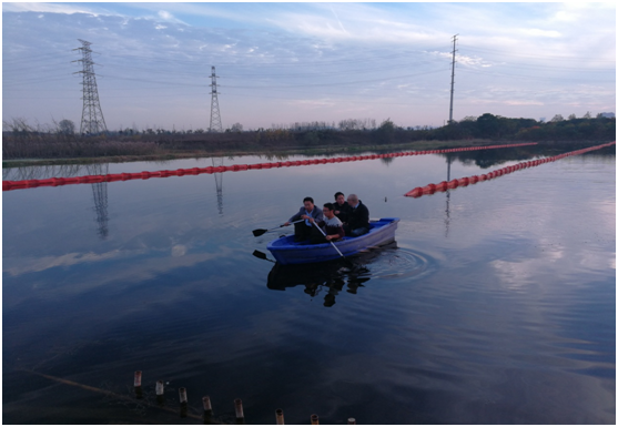 在项目现场,韩总、黄总工仔细查看了项目主要设备的运营情况,详细询问了设备的运营效果和成本,并在现场运营人员的陪同下,乘船进入生态塘内近距离查看水下森林及塘内水质。