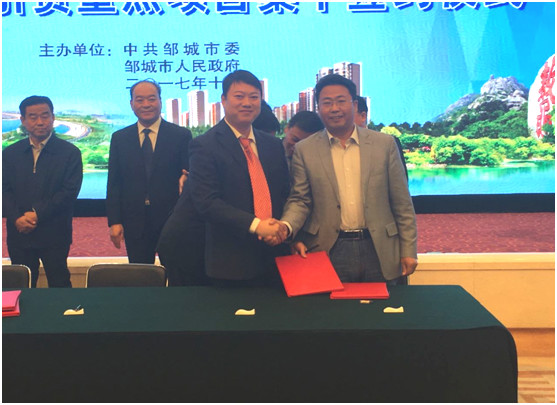 国祯环保韩洪彬总经理与邹城商务局孙局长签约