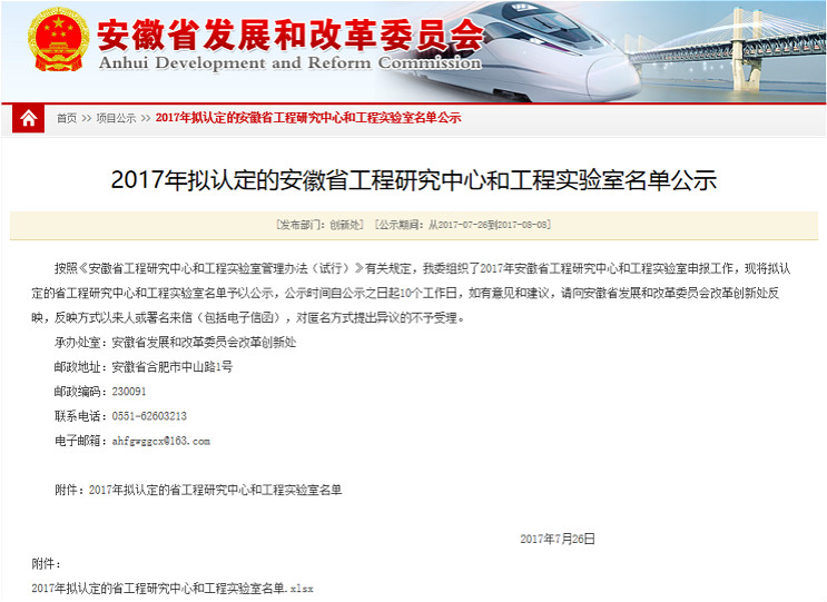 近日,安徽省发展与改革委员会发布了《2017年拟认定的省工程研究中心和工程实验室名单》,国祯环保与中国科学技术大学共建的“安徽省废水资源化利用工程实验室”成功获批。