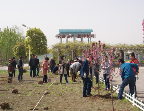 铲土填坑、挥锹培土、夯实土层、浇水灌根……大家有序分工,拎水的,挖坑的,扛树苗的,浇水的,来回穿梭,井井有条。在大家齐心协力,短短一天时间,就种植了樱花300棵,四红果50棵、大樱桃10棵、茶梅200棵。最后,大家看着自己的劳动成果——一颗颗树挺拔而立时,脸上都心满意足的露出了笑容。