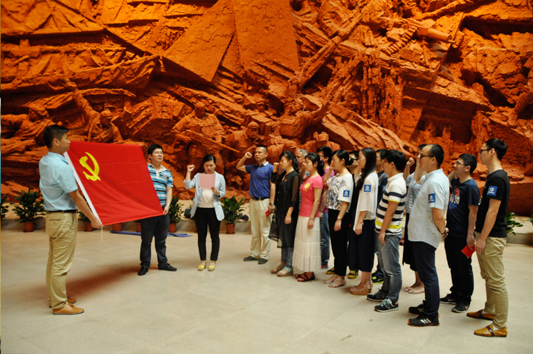 参观结束后,党员们怀着澎湃的心情,面向鲜红的党旗,郑重举起右手,在领誓人的带领下,庄严宣誓重温入党誓词,从思想上再次接受入党誓词的洗礼。