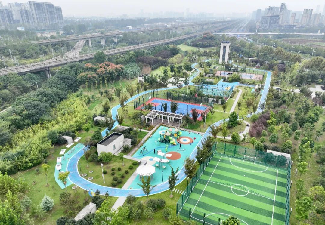 合肥胡大郢体育公园,草木葱郁、绿树成荫,犹如嵌于城市的一块翡翠碧玉,不少市民在这里休闲锻炼,悠然自得。而在公园之下,藏着一座全地埋式污水厂——胡大郢净水厂,这里日净化10万吨水,将一泉清水送往十五里河,为十五里河流域水环境治理作出了重要贡献。“污水厂+公园”的模式,实现了城市更新所提倡的“补齐设施短板、完善功能配套、优化空间布局”等一系列先进理念,为周边居民打造了一个四时有景的幸福乐园。
